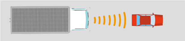 カメラやレーダーなどで前の自動車を検知して追突するおそれがある場合には、音や警告灯などでドライバーに警告してブレーキ操作による衝突回避を